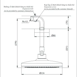 Loại sản phẩm: Bát sen tắm gắn trần (Ceiling-Mount Shower Head)