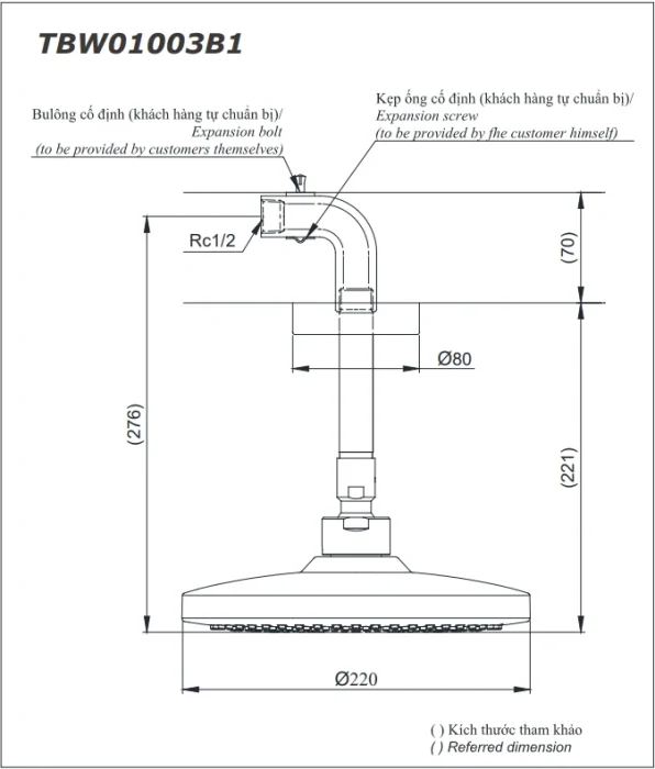 TOTO TBW03001B1 thuộc dòng G Series, là mẫu bát sen tắm gắn trần cao cấp, thiết kế hiện đại và tinh tế với đường kính lớn 220 mm — lý tưởng cho trải nghiệm tắm thoải mái và sang trọng.