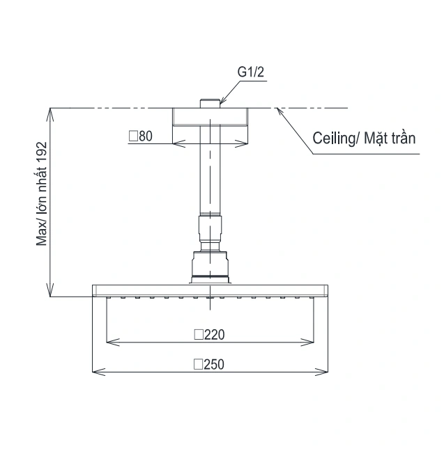 Loại sản phẩm: Bát sen tắm gắn trần (Ceiling-Mount Overhead Shower)