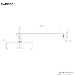 Kích thước: Ø 250 mm (đường kính), tay nối dài 400 mm, độ dày bát sen 72 mm
