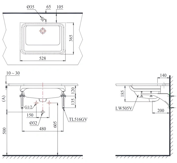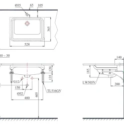 6. Bản vẽ kỹ thuật 2D lavabo âm bàn LT505T