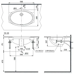6. Bản vẽ kỹ thuật 2D lavabo âm bàn LW1506V/TL516GV