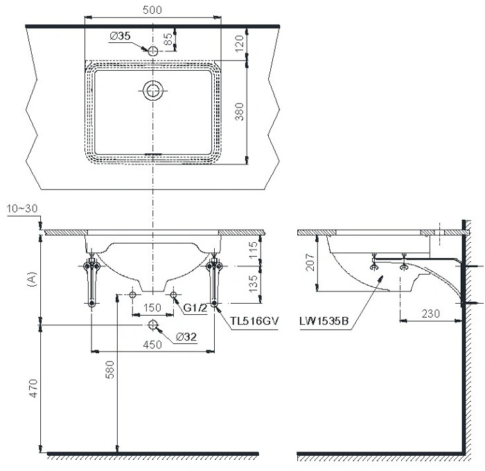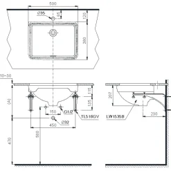 6. Bản vẽ kỹ thuật 2D lavabo âm bàn LW1535V/TL516GV
