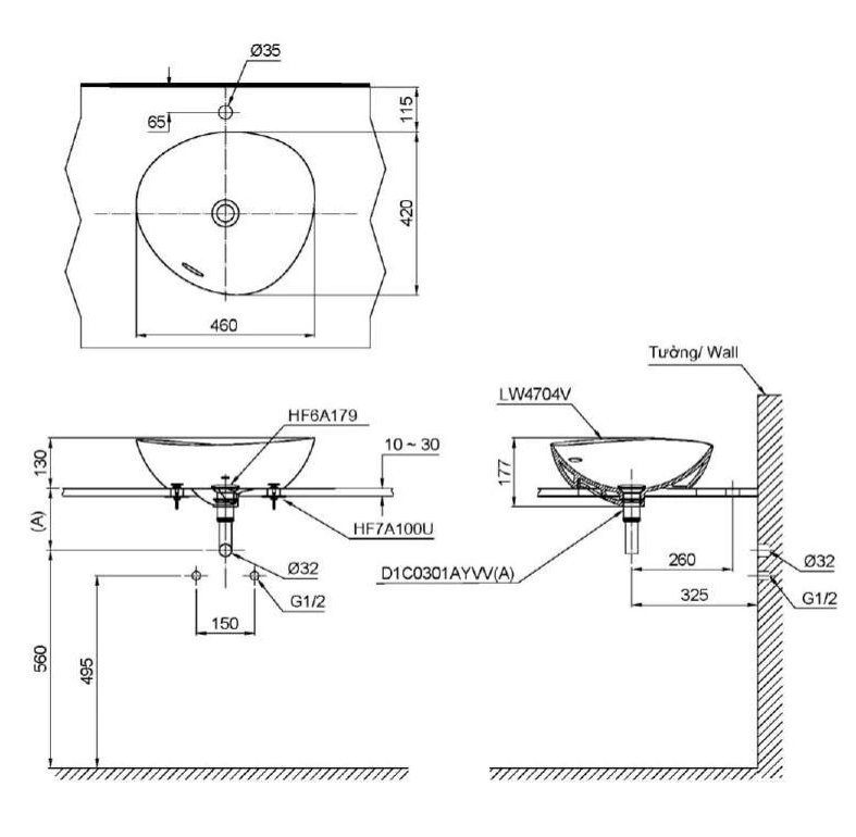 6. Bản vẽ kỹ thuật 2D lavabo Đặt Bàn LT4704G17