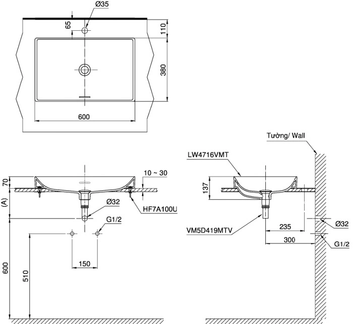 6. Bản vẽ kỹ thuật 2D lavabo Đặt Bàn LT4716MTG19