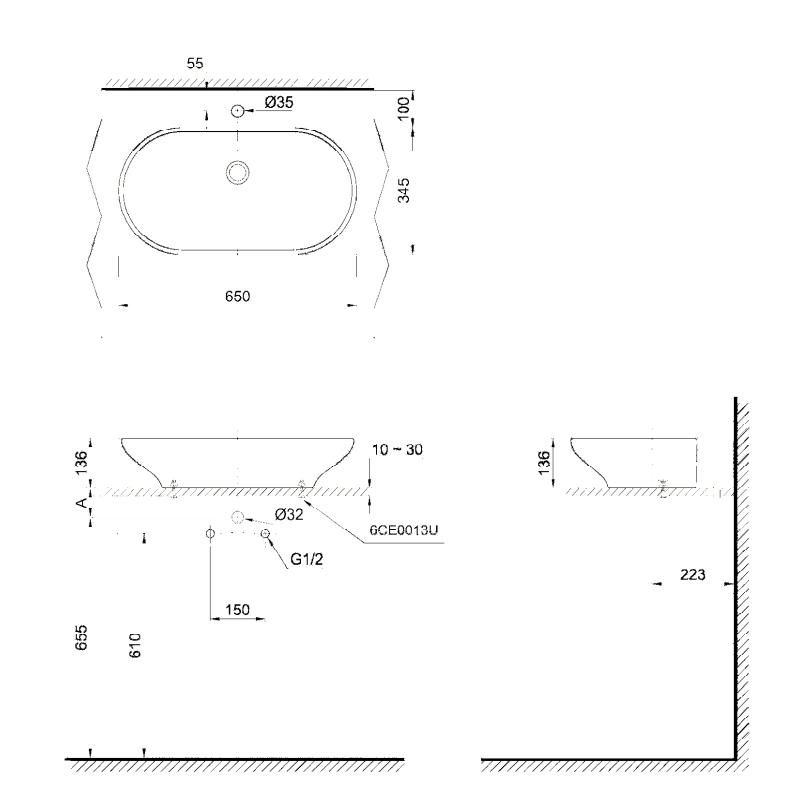 6. Bản vẽ kỹ thuật 2D lavabo Đặt Bàn LW181Y