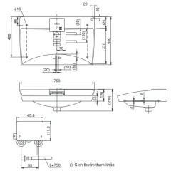 6. Bản vẽ kỹ thuật 2D lavabo Đặt Bàn LW991A