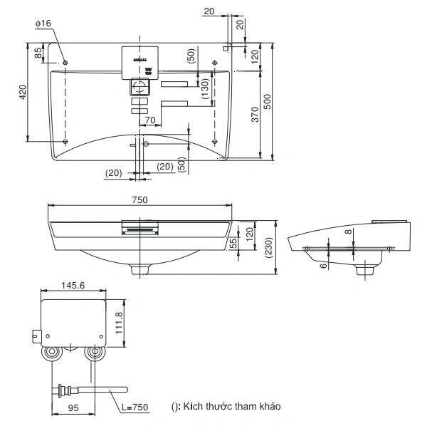 Kích thước: 750 × 500 × 120 mm