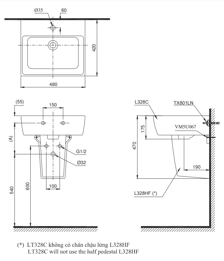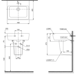 6. Bản vẽ kỹ thuật 2D lavabo treo tường LHT328C