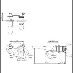 Loại sản phẩm: Vòi lavabo nóng lạnh gắn tường