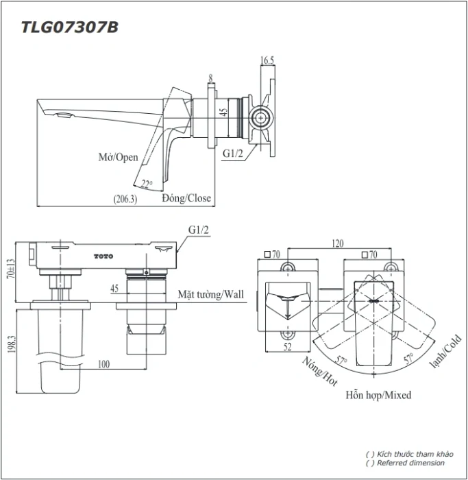 6. Bản vẽ kỹ thuật 2D vòi lavabo âm tường TLG07307BB