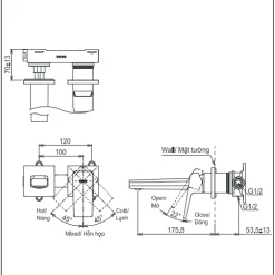 Loại sản phẩm: Vòi lavabo nóng lạnh gắn tường