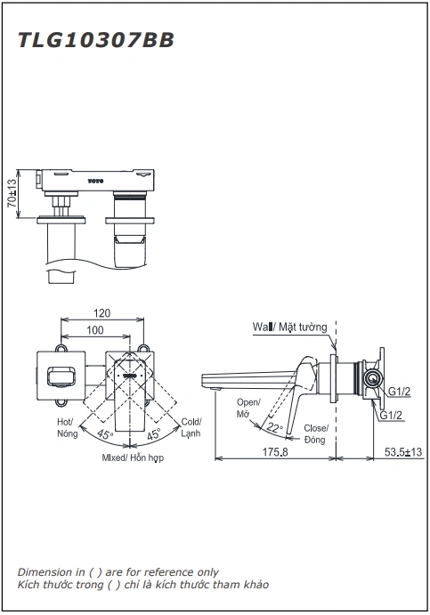 6. Bản vẽ kỹ thuật 2D vòi lavabo âm tường TLG10307BB