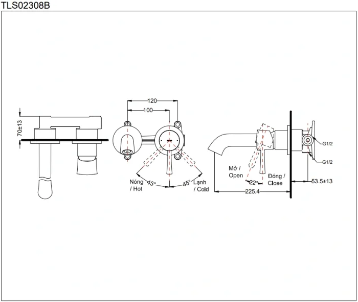 6. Bản vẽ kỹ thuật 2D vòi lavabo âm tường TLS02308B