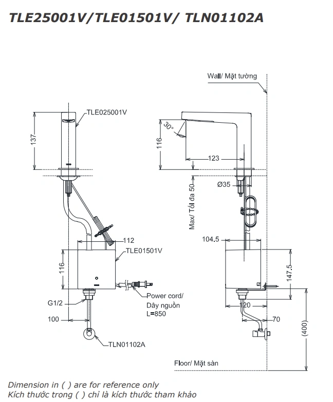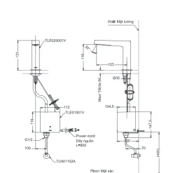 6. Bản vẽ kỹ thuật 2D vòi lavabo cảm ứng TLE25001V
