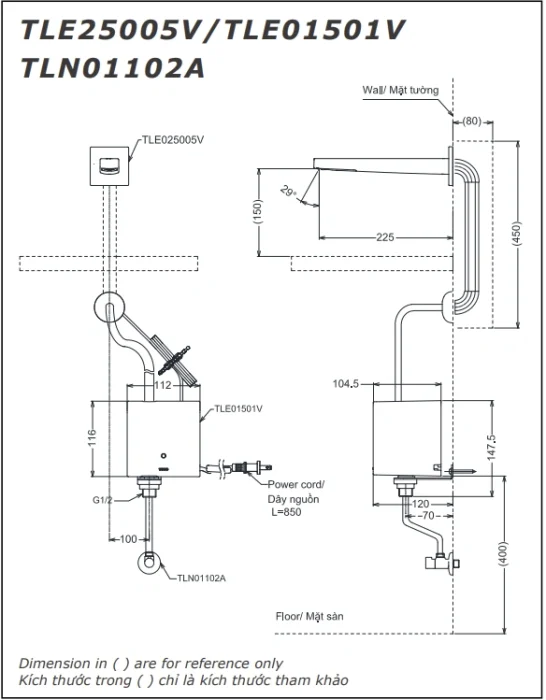 6. Bản vẽ kỹ thuật 2D vòi lavabo cảm ứng TLE25005V
