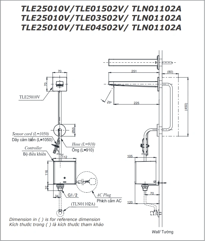 6. Bản vẽ kỹ thuật 2D vòi lavabo cảm ứng TLE25010V