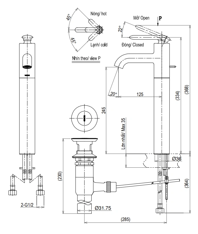 Áp lực nước: 0.05MPa ~ 0.75MPa
