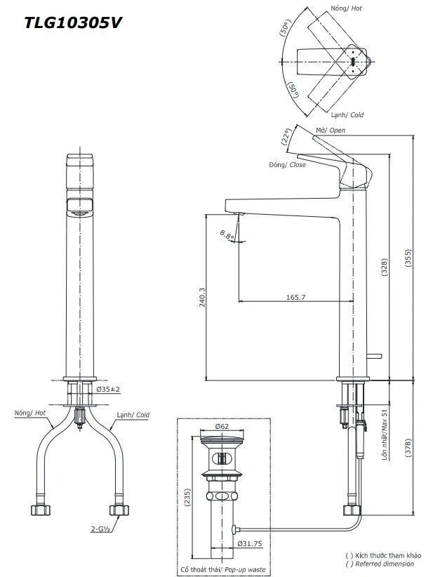 6. Bản vẽ kỹ thuật 2D vòi lavabo gật gù nóng lạnh TLG10305V