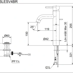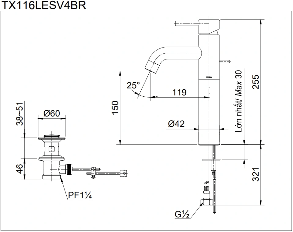 6. Bản vẽ kỹ thuật 2D vòi lavabo gật gù nóng lạnh TX116LESV4BR