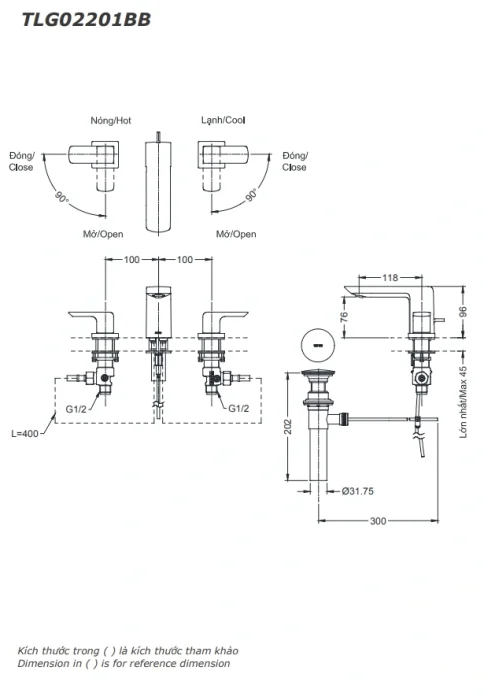 6. Bản vẽ kỹ thuật 2D vòi lavabo tay vặn nóng lạnh TLG02201BB
