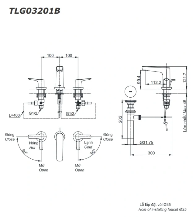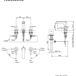 6. Bản vẽ kỹ thuật 2D vòi lavabo tay vặn nóng lạnh TLG03201BB