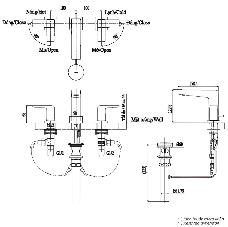 Loại sản phẩm: Vòi lavabo nóng lạnh 3 lỗ để bàn