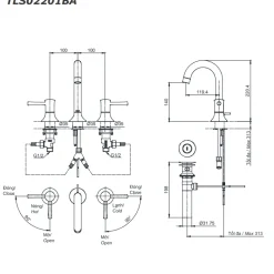 6. Bản vẽ kỹ thuật 2D vòi lavabo tay vặn nóng lạnh TLS02201BA