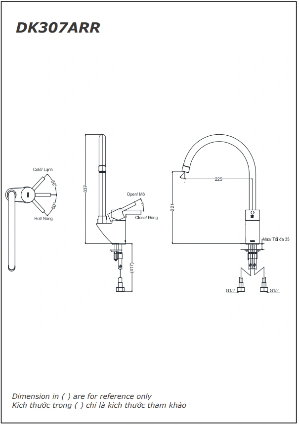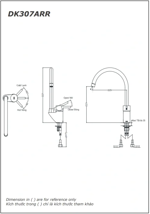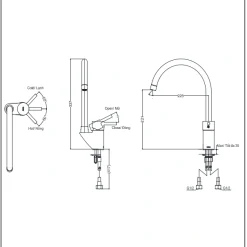 6. Bản vẽ kỹ thuật 2D vòi rửa chén bát nóng lạnh DK307ARR