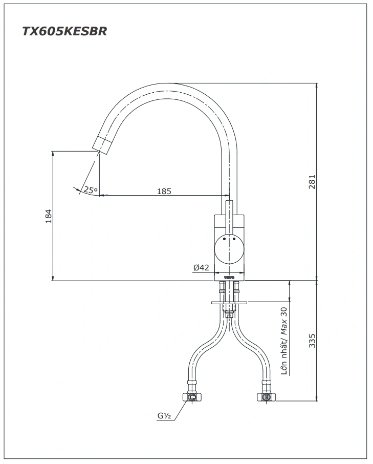 6. Bản vẽ kỹ thuật 2D vòi rửa chén bát nóng lạnh TX605