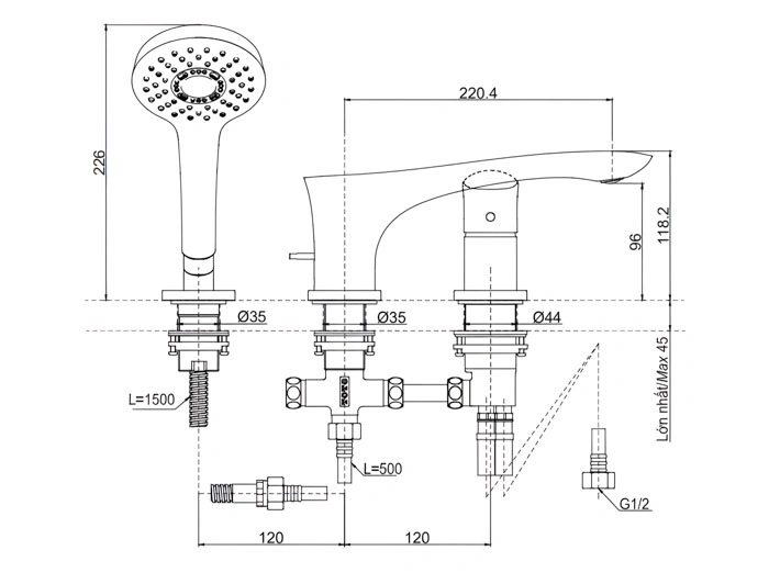 Loại sản phẩm: Vòi xả bồn tắm.