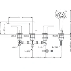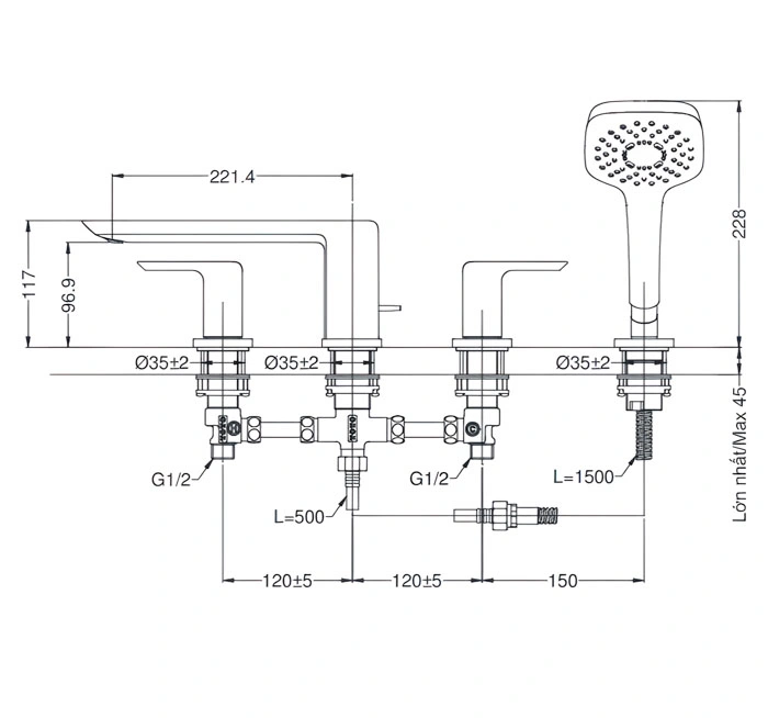 6. Bản vẽ kỹ thuật 2D vòi xả bồn tắm nóng lạnh TBG02202BB
