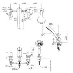 Phụ kiện kèm theo: Bộ ốc siết, gioăng cao su, dây nối.