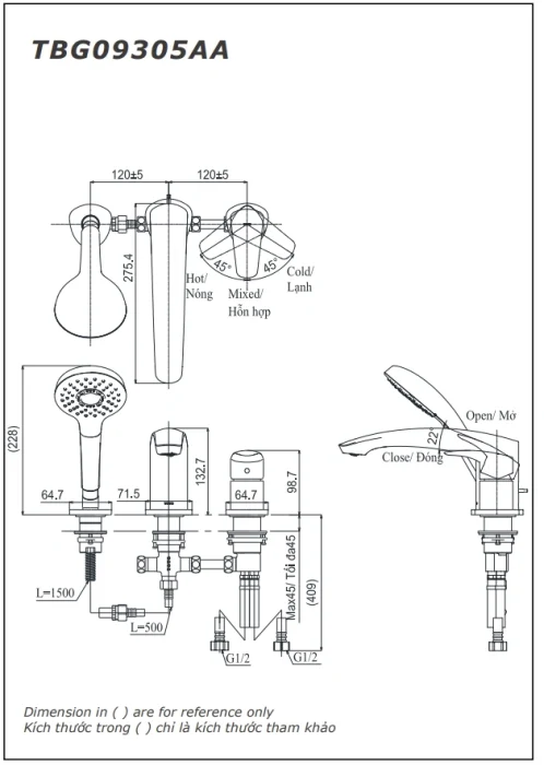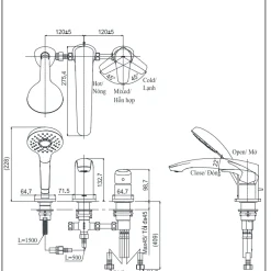 6. Bản vẽ kỹ thuật 2D vòi xả bồn tắm nóng lạnh TBG09305A