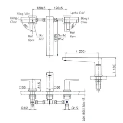 6. Bản vẽ kỹ thuật 2D vòi xả bồn tắm nóng lạnh TBG10201B