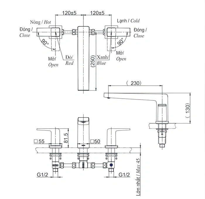 Chất liệu: Đồng thau mạ crom hoặc inox cao cấp.