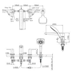 6. Bản vẽ kỹ thuật 2D vòi xả bồn tắm nóng lạnh TBG10202A