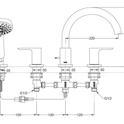 6. Bản vẽ kỹ thuật 2D vòi xả bồn tắm nóng lạnh TBS01202BA